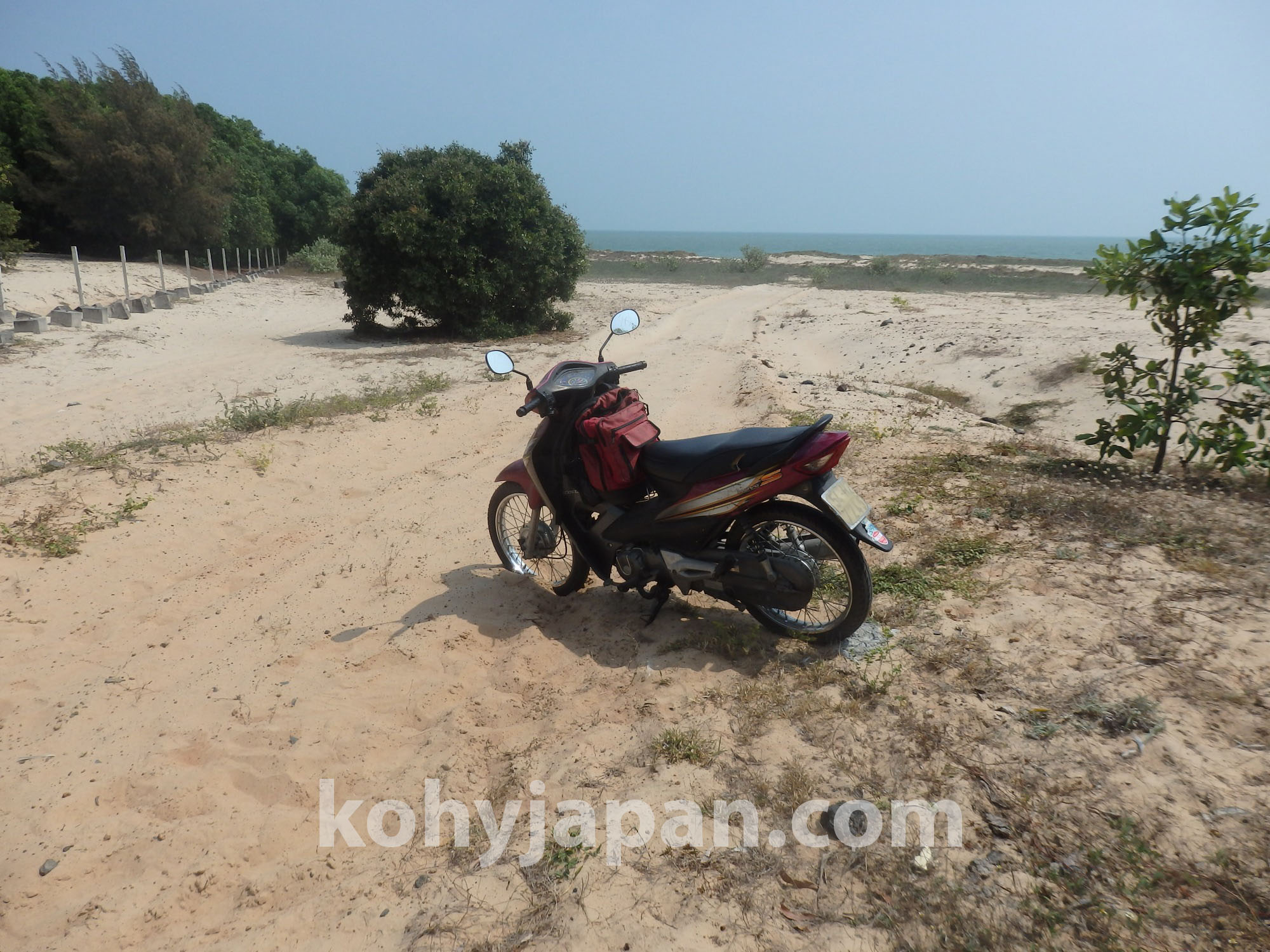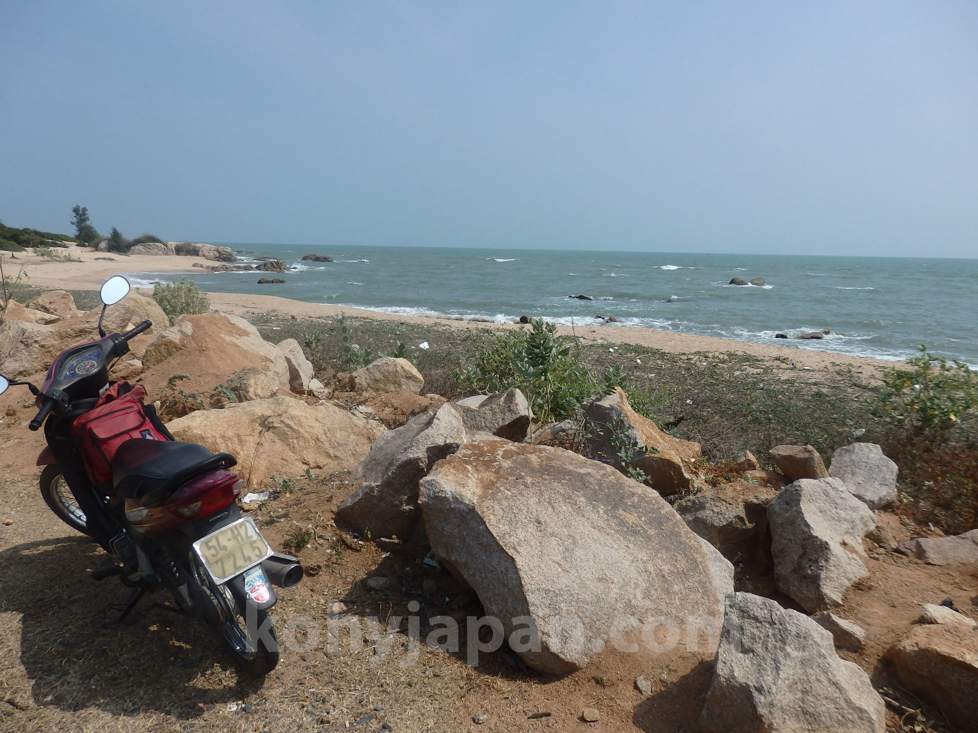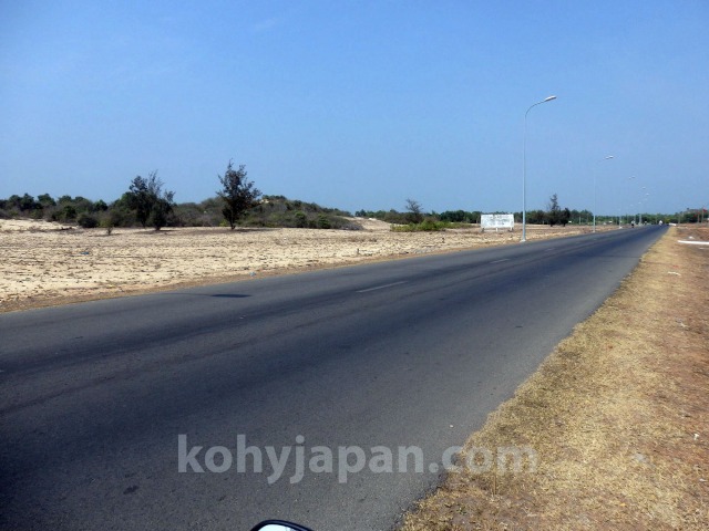 ブンタウ(Vung Tau)からここルート5までは海岸に沿った道が長く続きますが、このルート5がもっとも味わいがある海岸通りです。ところどころリゾート開発が進んでしまっていますが、まだまだ自然が残ったワイルドな海岸が魅力です。行ったのが旧正月前だったのかほとんど人がいません。こんなところでパンクしたらどうなっちゃうんだろうと心配になります。