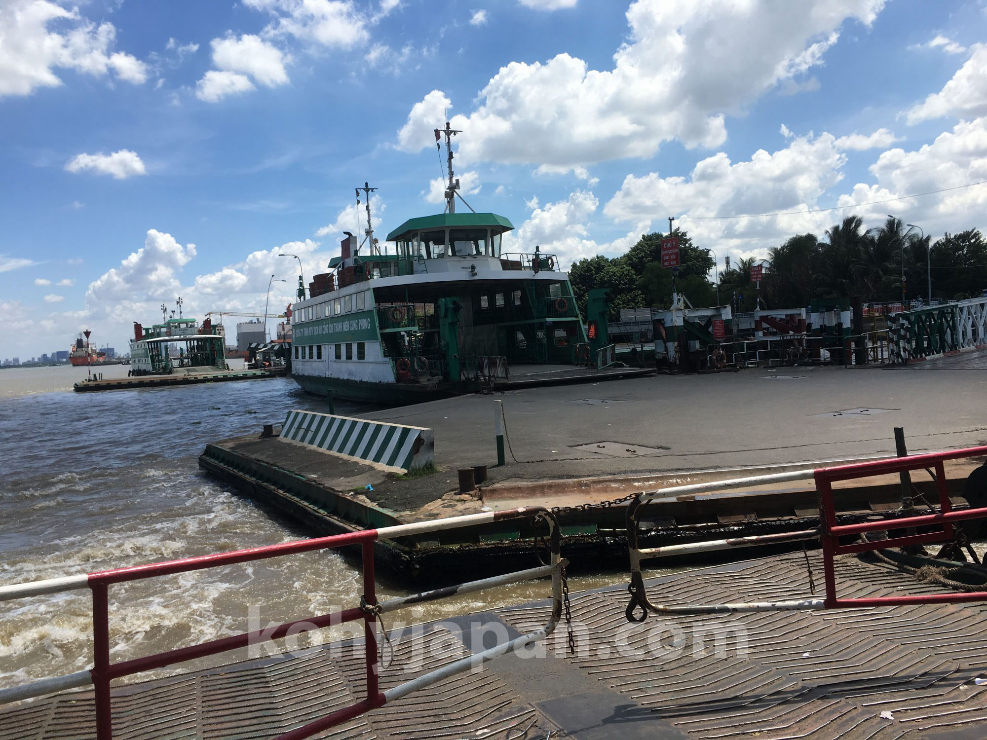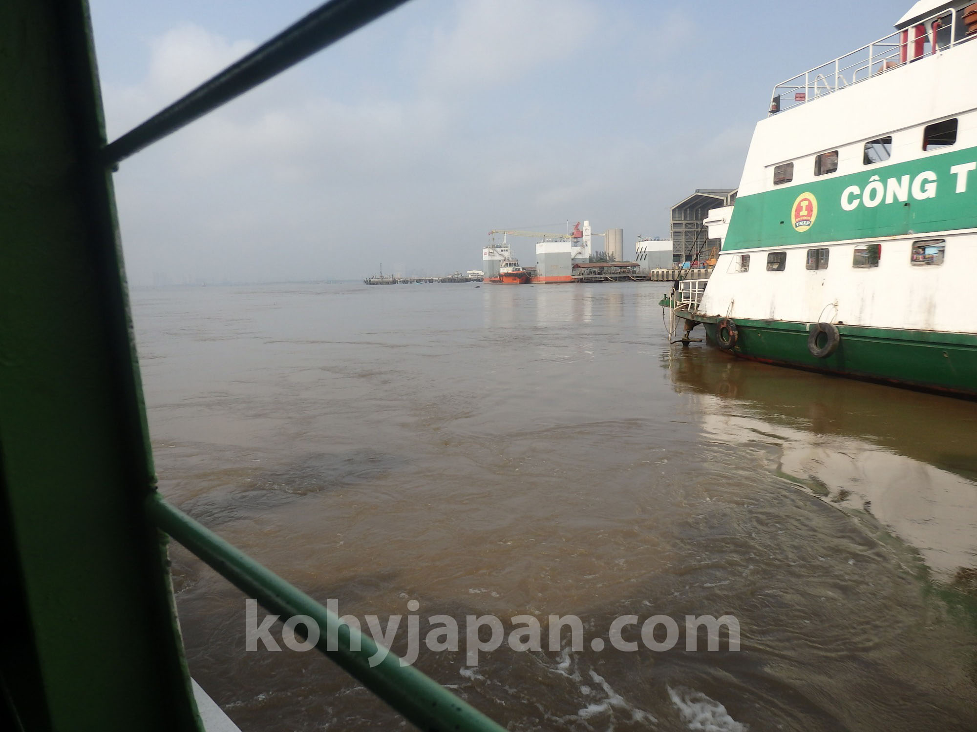 通常、車やバスでサイゴンからムイネーに行くにはサイゴン川のトンネルをくぐり、Mai Chi Tho 通りを直進して高速道路に入りますが、高速道路に入る前に右折してCat Lai 港へ向かいます。ここには橋がありませんのでフェリーで渡河します。この渡河コースがルート1ですが、なかなか日本では見られない景色なのでおすすめです。