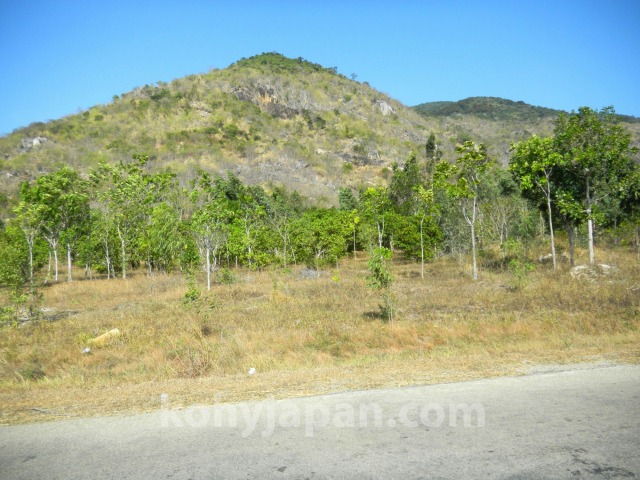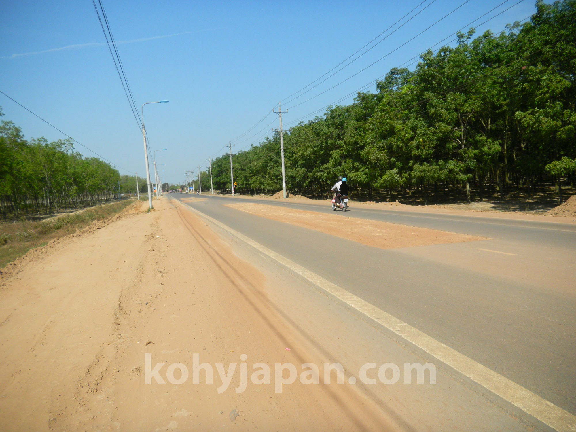 国道51号線から左折して東へ延びる道です。この道は当時すでにかなり整備されており、とくに特徴はありませんでしたが、周囲が広大な天然ゴムの植林地帯なので日本ではまずない東南アジア独特の景色だと思います。確かこの通りだと思いましたが、間違っているかもしれません。
