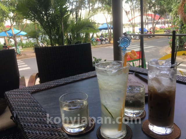 アイスコーヒーの値段は25,000ドン(約120円)、アイスミルクコーヒーは27,000ドン(約130円)、レモンジュースは30,000ドン(約140円)でした。まあまあの値段。他にスムージーやヨーグルト、アイス、生フルーツジュース、ビールも飲めます。ビールの値段は39,000ドン(約190円)です。カフェのスタッフはあまり印象に残ってませんが、問題ないと思います。普通のリラックスしたスタッフです。