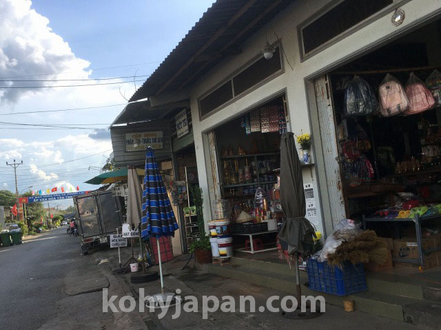 この道はほぼ全域がコンクリート道路で2台の車がすれ違うのがやっとなほど道幅が狭く、道沿いには小さいお店や民家が並びます。私はこの道を通ると、自分がまだ幼い子供の頃の日本にはまだまだあった懐かしい裏通り、金物屋や駄菓子屋が並ぶ未舗装道路の昭和的な裏通りを思い出します。しかし、日本の風景と異なるのはお店や民家の背景に広がる広大な未開拓ジャングルです。