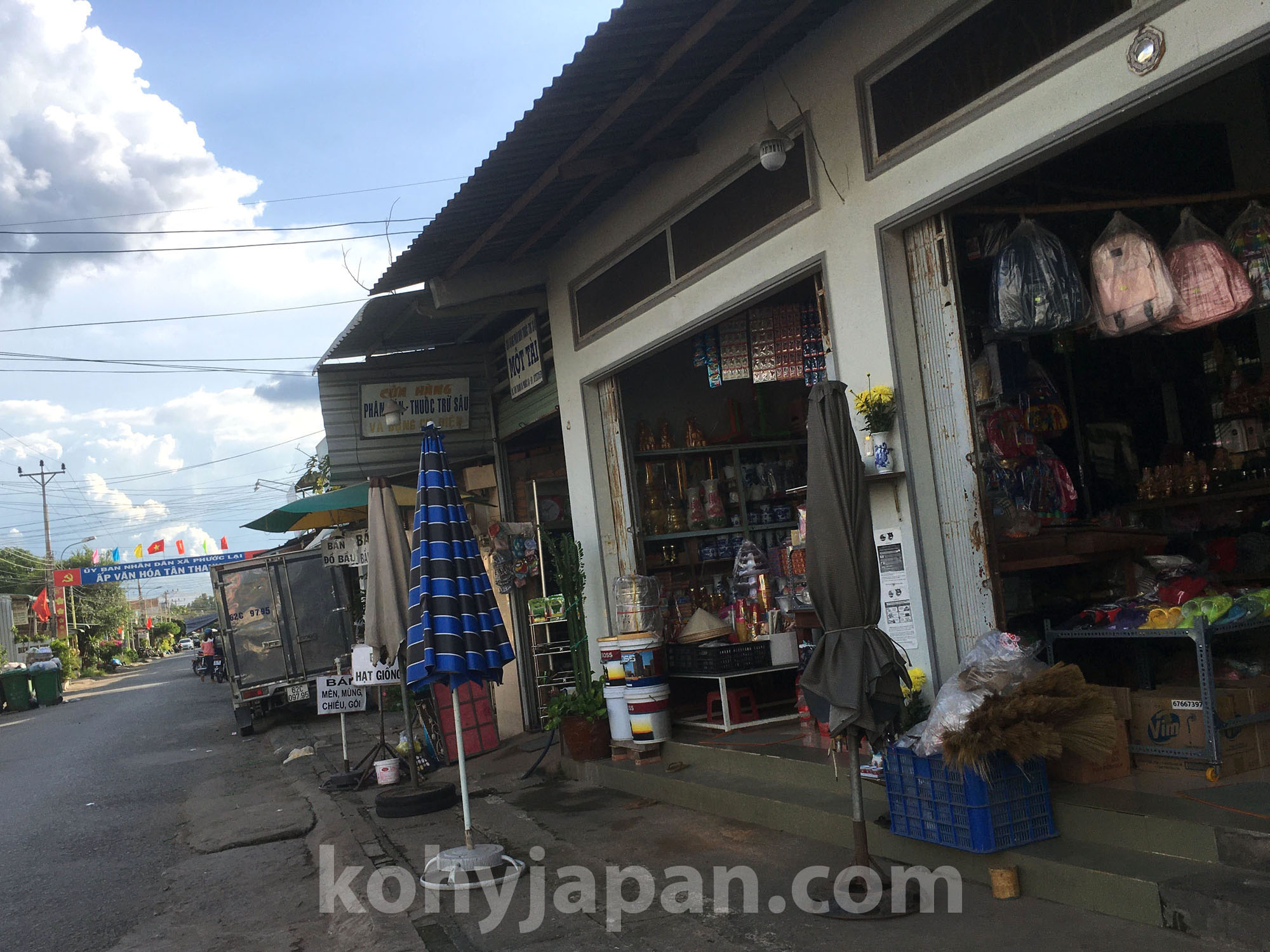この道はほぼ全域がコンクリート道路で2台の車がすれ違うのがやっとなほど道幅が狭く、道沿いには小さいお店や民家が並びます。私はこの道を通ると、自分がまだ幼い子供の頃の日本にはまだまだあった懐かしい裏通り、金物屋や駄菓子屋が並ぶ未舗装道路の昭和的な裏通りを思い出します。しかし、日本の風景と異なるのはお店や民家の背景に広がる広大な未開拓ジャングルです。
