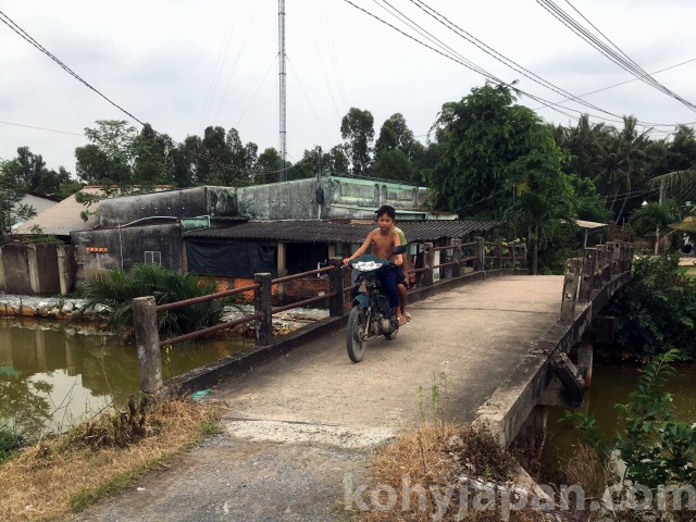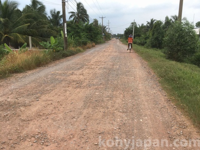 さて、この地域は近くホーチミンシティ2区への橋建設が予定されているため、現在地価が高騰しています。私たちがこの道を走っているときも、一人の男性がバイクで追いかけてきて土地を買わないか勧められました。その値段は300m^2で約1000万円。恐らく橋の建設が終わるころには倍になるといいます。私の経験ではその可能性は高いと思いますが、一方政府のプロジェクトに組み込まれるリスクも高く、土地の転売で一儲けするのは簡単ではないと考えます。さらに、転売目的でなくても、もともと土地が悪いので将来建設した建造物に問題が生じることも予想されます。