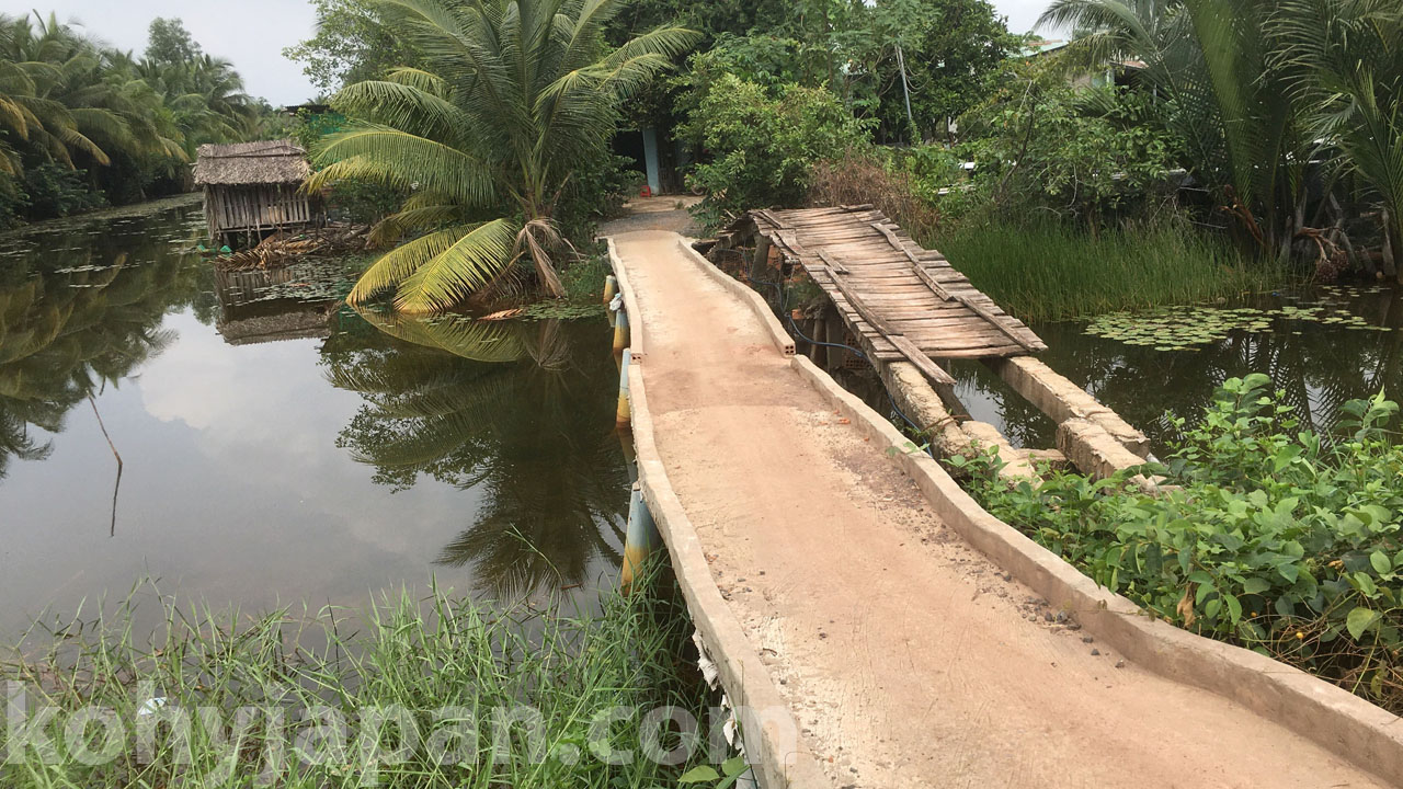 さて、この地域は近くホーチミンシティ2区への橋建設が予定されているため、現在地価が高騰しています。私たちがこの道を走っているときも、一人の男性がバイクで追いかけてきて土地を買わないか勧められました。その値段は300m^2で約1000万円。恐らく橋の建設が終わるころには倍になるといいます。私の経験ではその可能性は高いと思いますが、一方政府のプロジェクトに組み込まれるリスクも高く、土地の転売で一儲けするのは簡単ではないと考えます。さらに、転売目的でなくても、もともと土地が悪いので将来建設した建造物に問題が生じることも予想されます。