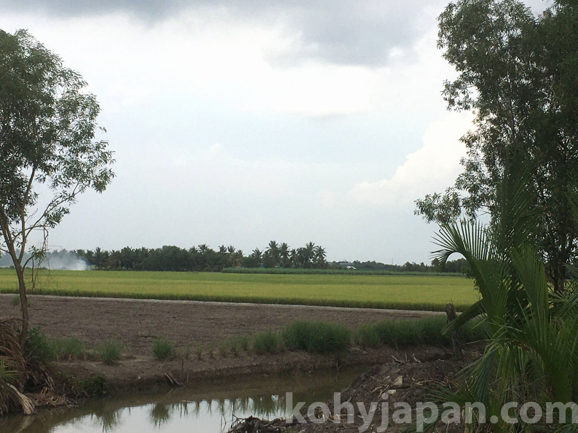 今回行ってみたNha Be川の対岸の地域もかなりの田舎、ホーチミンシティとは景色が全く異なる別世界です。Nha Be川の作った氾濫原であるこの地域は、大小のチャネル(天然の運河)が網目状に流れる広大なジャングルが広がり、その一部が民家や水田・果樹園などの耕作地に利用されています。後で触れますが、こんな開発には適さない地域でさえも現在、ベトナムの不動産高騰の影響を大きく受けています。