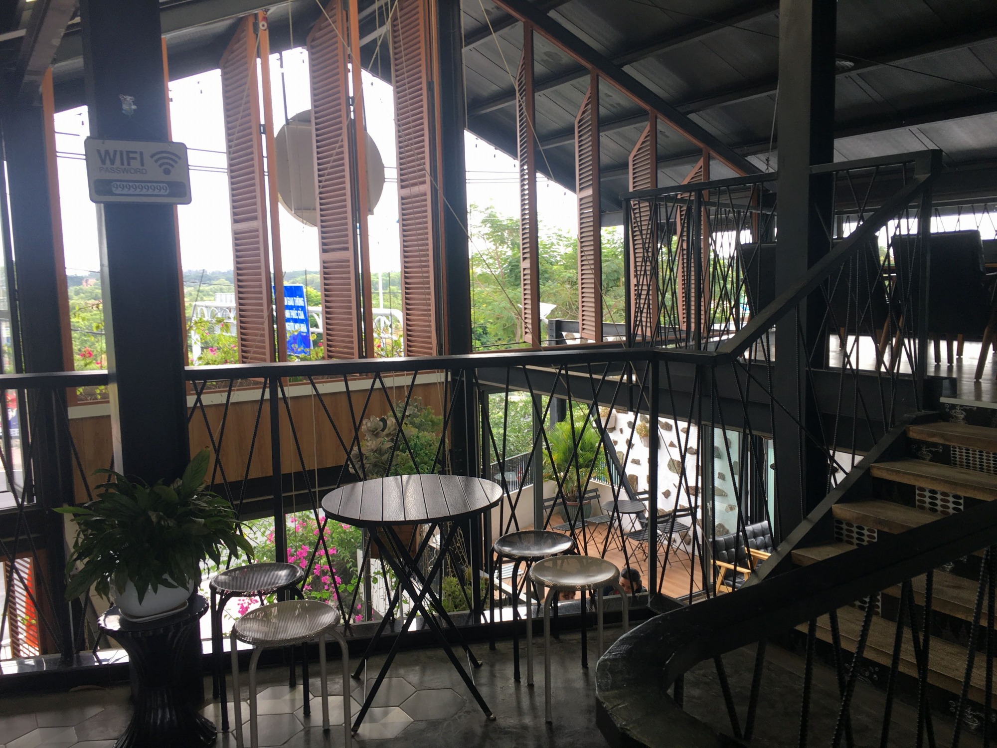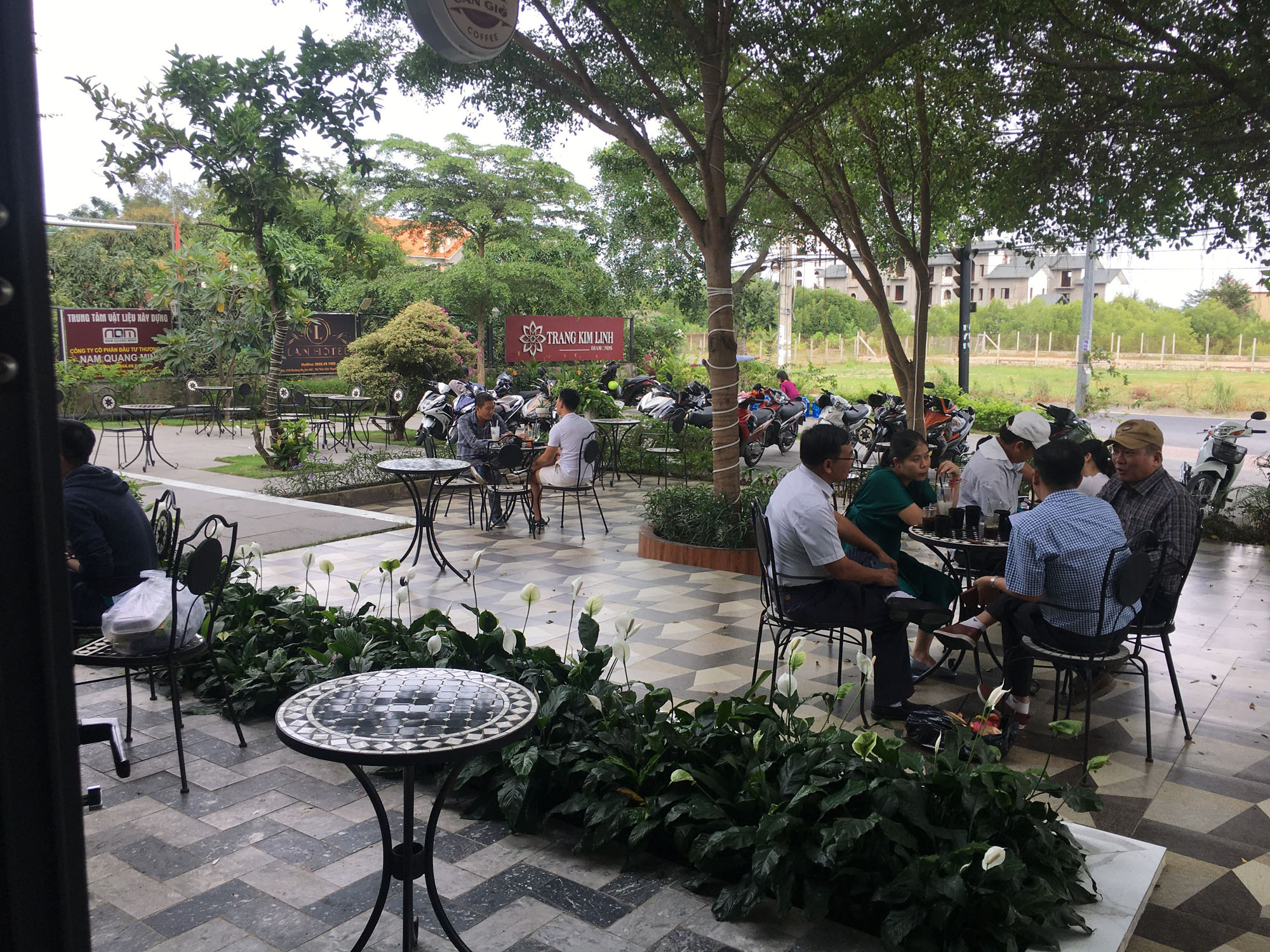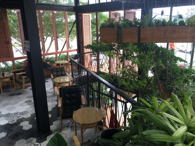 写真はちょうどお客さんが一段落した時間に撮影したものですので閑散としていますが、ちょっと前は人がたくさんいました。緑が多く心地の良い椅子、空いた窓からさわやかな風が吹き抜けるかなりリラックスできる空間です。私たちは2時間くらい何もせずにくつろいでしまいました。さすがにせっかくカンゾーまで来てここで1日が終わるのは寂しいので2時間ですが、その気になれば1日中居られます。長居すると店の人には嫌がられると日本人的には思うかもしれませんが、案外ベトナム人は何とも思わないみたいで、一般的に少なくとも店員の態度には迷惑そぶりは全く現れません。頻繁に水を追加してくれます。こういうのは本当にベトナムは気を使わなくていいですね。