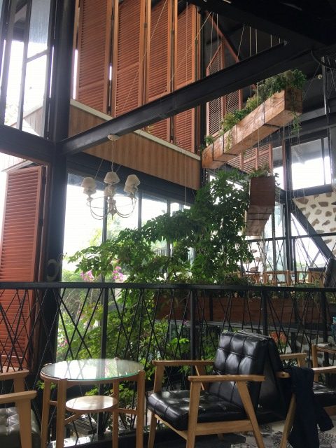 カフェの2F、吹き抜けの天井が気持ちいい